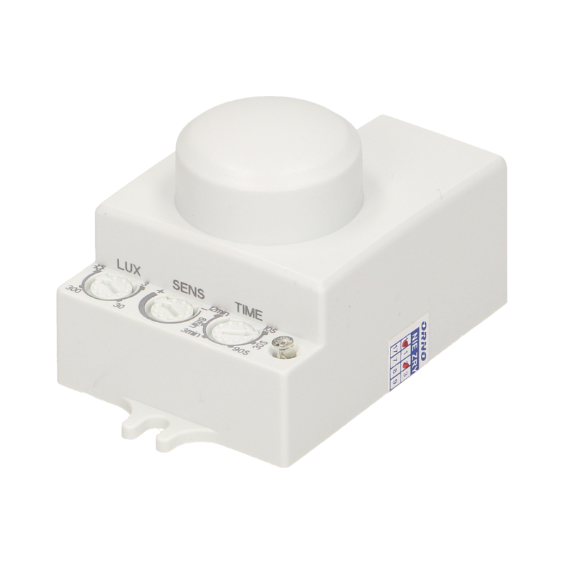 Mikrofalowy (radarowy), małogabarytowy czujnik ruchu jest aktywnym detektorem ruchu, który wysyła fale elektro-magnetyczne wysokiej częstotliwości (5,8GHz) i odbiera ich echo. Czujnik wykrywa zmiany w echu, wywołane nawet najmniejszym ruchem w obserwowanym obszarze. Niewielka emisja mocy (<0,2mW), potencjometry do regulacji: czasu świecenia, zasięgu wykrywania ruchu i czułości natężenia światła. Detekcja ruchu przez szkło, tworzywa sztuczne, płyty kartonowo-gipsowe, brak wpływu temperatury na detekcję. Czujnik współpracuje z oświetleniem LED-owym.